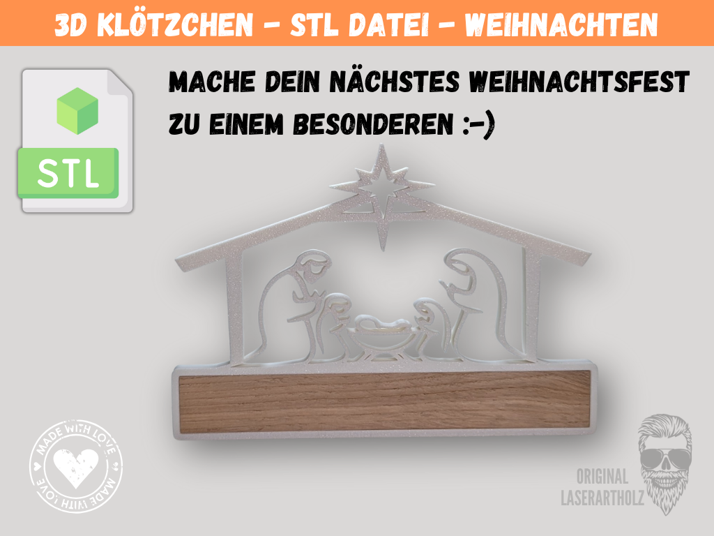 Die Vorweihnachtszeit ist für viele die schönste Zeit des Jahres – voller Gemütlichkeit, Bastelspaß und kreativer Projekte. Wenn du einen 3D-Drucker zu Hause hast, gibt es jetzt etwas ganz Besonderes: STL-Vorlagen für Klötzchen und Easy Sticks mit weihnachtlichen Motiven wie Krippe, Stern, Tannenbaum und Weihnachtskugel.