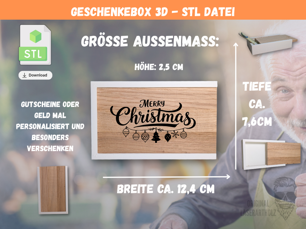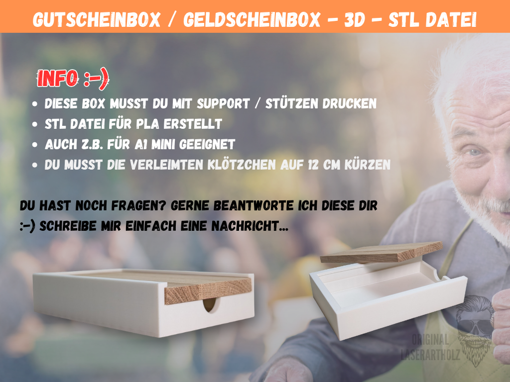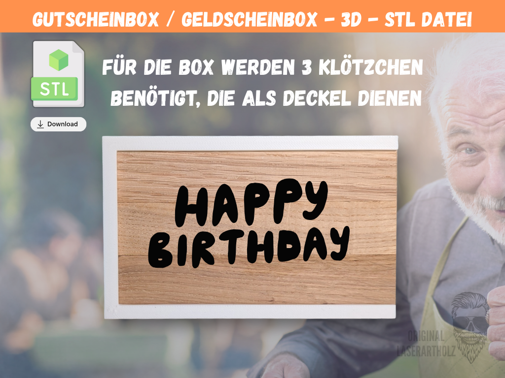 Ob als Gutscheinbox, Geldgeschenkbox oder Aufbewahrungsbox – mit dieser STL-Datei baust du deine ganz persönliche Geschenkbox, die garantiert für Aufmerksamkeit sorgt.