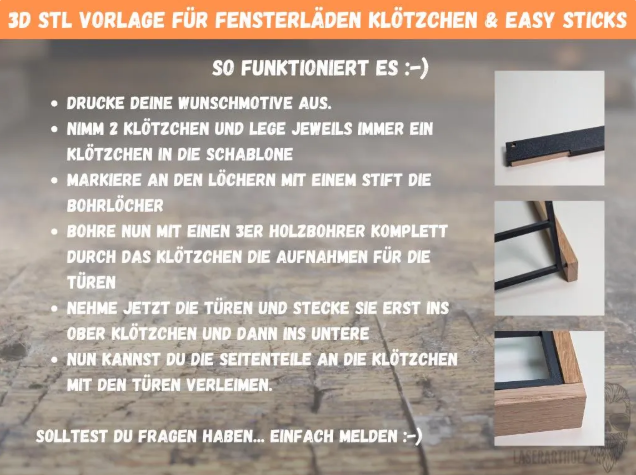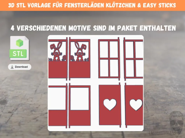 3D-Druck STL Datei – 4 verschiedene Motive – Fensterläden, Klappläden & Türen für Klötzchen & Easy Sticks | DIY Deko & Bilderrahmen Ideen…