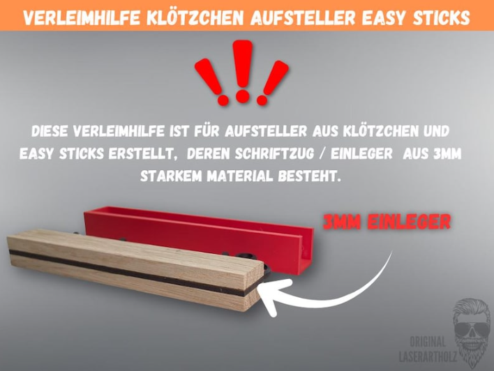 Verleimhilfe für Klötzchen Aufsteller – Easy Sticks Leimhilfe – DIY Bastelwerkzeug – präzises Verleimen für Klötzchen mit Schriftzug – 3D Druck Helfer