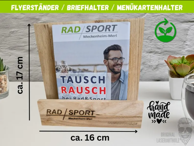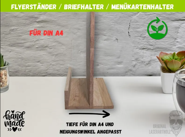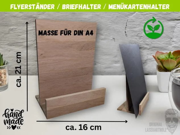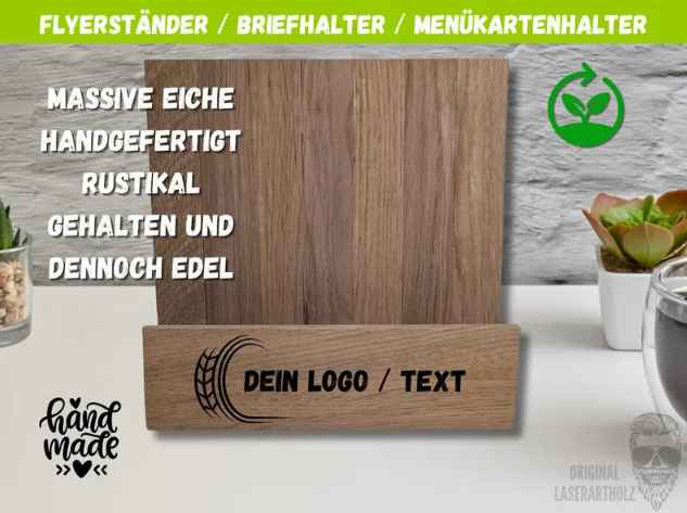 Unser Karten- und Flyerhalter aus massivem Eichenholz ist die ideale Lösung für eine elegante und hochwertige Präsentation. Ob bei Hochzeiten, Taufen, Geburtstagen, im Restaurant, Café oder Büro – dieser Aufsteller setzt Deine Karten perfekt in Szene.