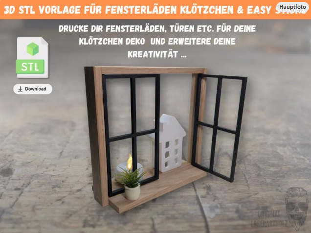 3,49 €In den Warenkorb3D-Druck STL Datei – 4 verschiedene Motive – Fensterläden, Klappläden & Türen für Klötzchen & Easy Sticks | DIY Deko & Bilderrahmen Ideen…