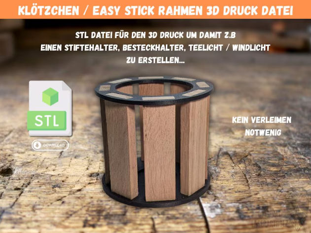 Windlicht, Besteckhalter, Stiftebox u.v.m. | 3D-Druckvorlage für Klötzchen-DIY | STL-Datei für Easy Sticks oder Klötzchen