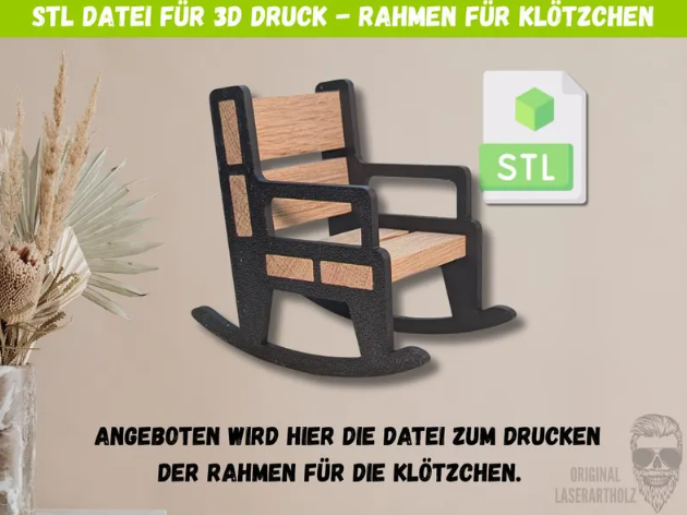 Schaukelstuhl mit Klötzchen / Rahmen für Klötzchen / Easy Sticks – 3D Druck – Digitale STL Datei für 3D Druck – Deko – Handyständer