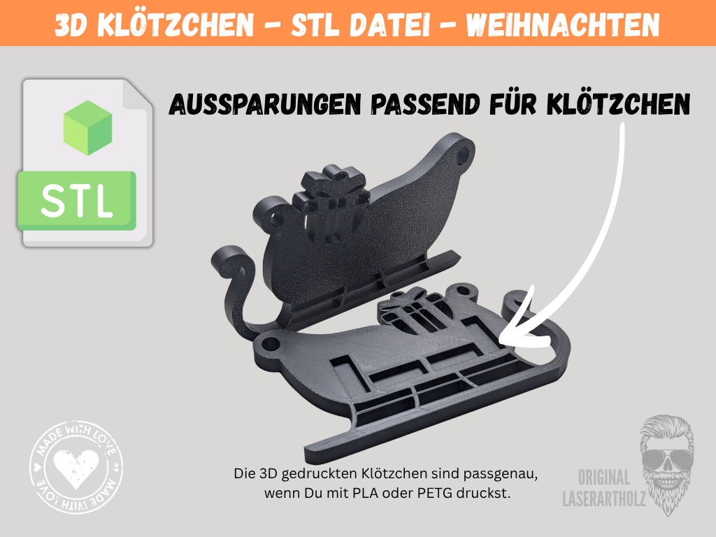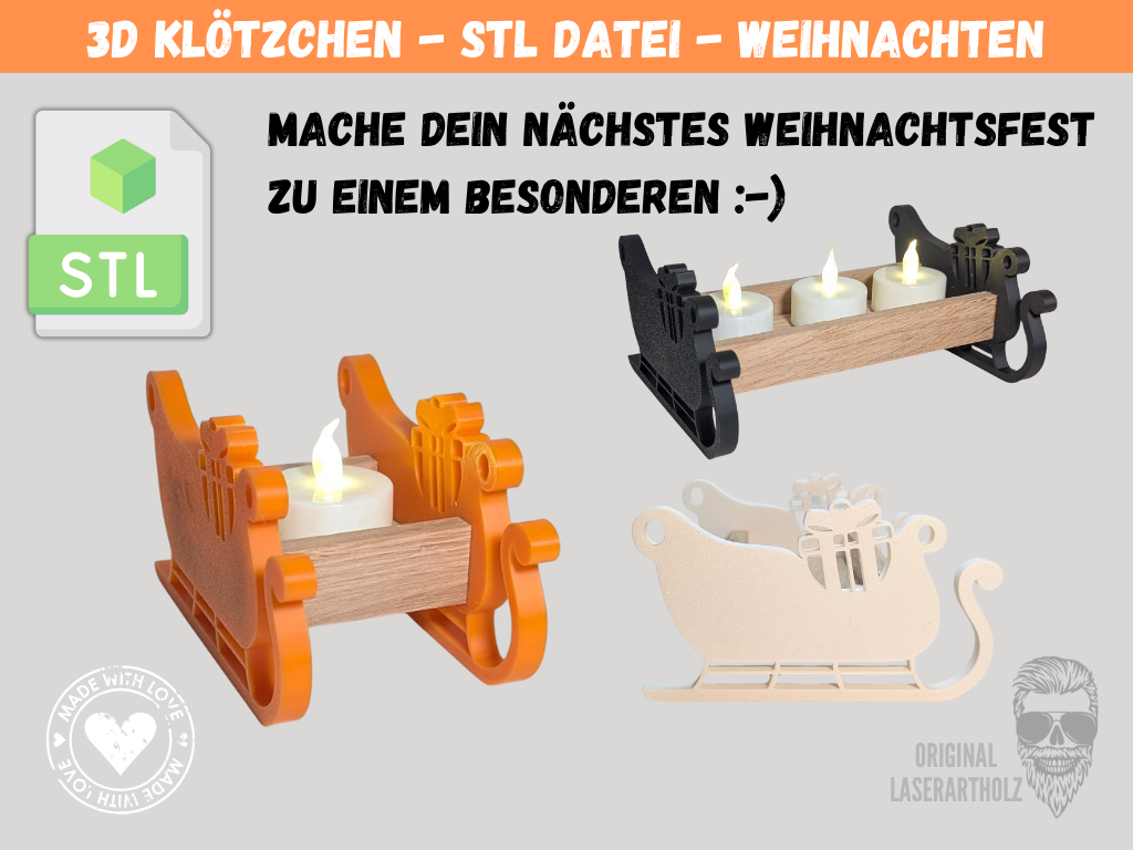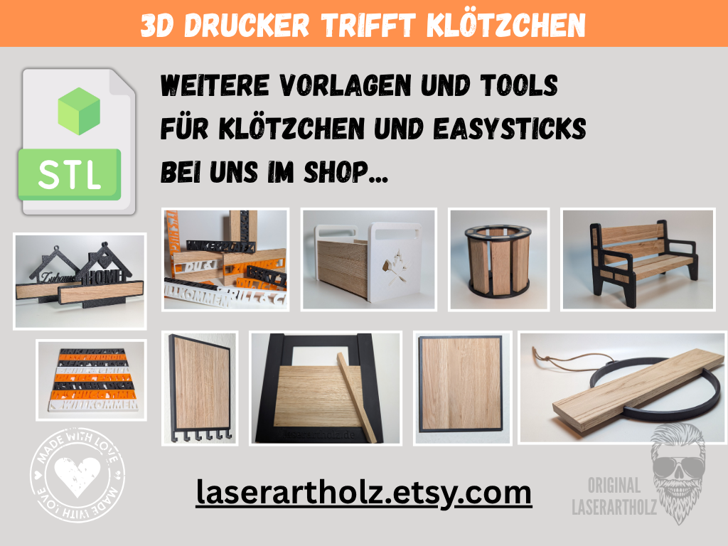 Mit unserer STL-Datei für Klötzchen (160 × 22 × 8 mm) und Easy Sticks kannst du im Handumdrehen wunderschöne Weihnachtsdeko oder individuelle Geschenke selbst herstellen.